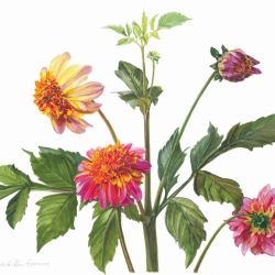 Het is mijn uitdaging om met alles wat ik aan techniek en vormgeving geleerd heb in het correct weergeven van botanische onderwerpen andere materialen en technieken op te pakken. Dat doe ik in gekleurde inkt, maar ik wil ook op zoek gaan naar vernieuwing in vormgeving van onderwerpen.